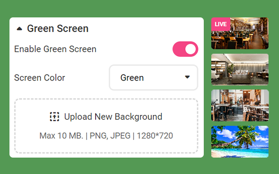 Green Screen GuidelinesWhen using a physical green screen, proper lighting is very important to help the chroma-keying process, for better green screen results:Straighten your backdrop. Your green screen must fill the entire...